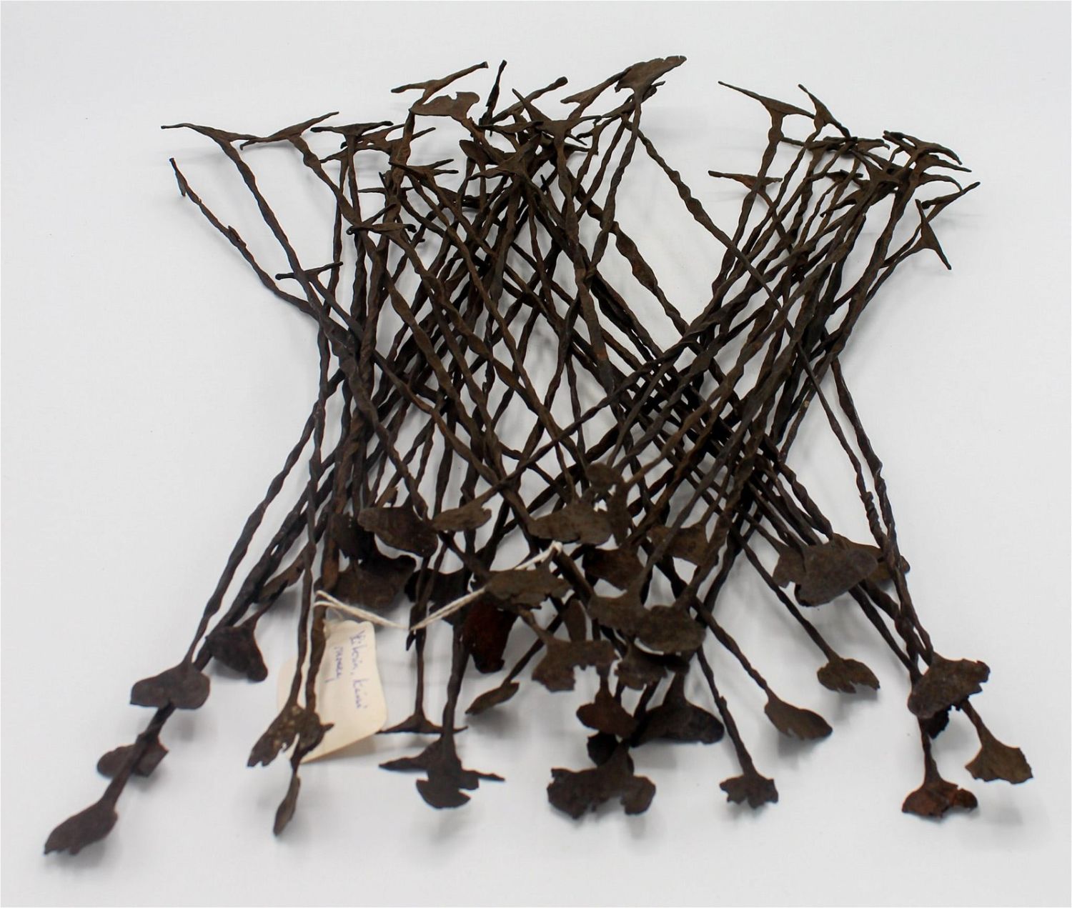 19th Century or early 20th century iron currency bundle, Kissi peoples, Liberia, West Africa, good aged patina, Approximate size, 14"H, exhibited at “Iron Clad, Fancy Free”, Inter-Church Centre Gallery, New York City, New York, October – November 2018.