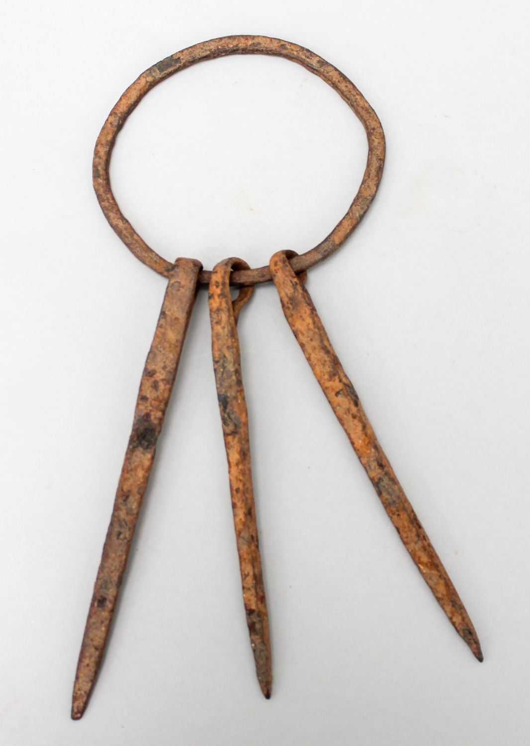 Wrought iron currency necklace, Kirdi peoples, Cameroon, West Africa, likely 19th century or early 20th century. Approximate size, 14"H x 6"Diameter, Exhibited, "Iron Clad, Fancy Free: Exhibition of African Iron from the Philip Gould Collection", Interchurch Center Gallery