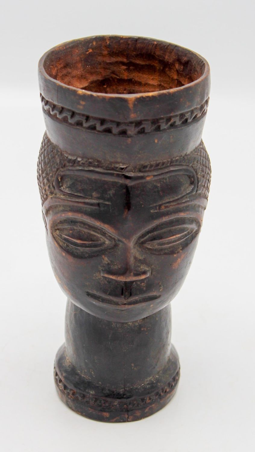 Kuba peoples, carved wood palm wine cup, Democratic Republic of the Congo, Central Africa, 20th century. Approximate size 6.25"H.