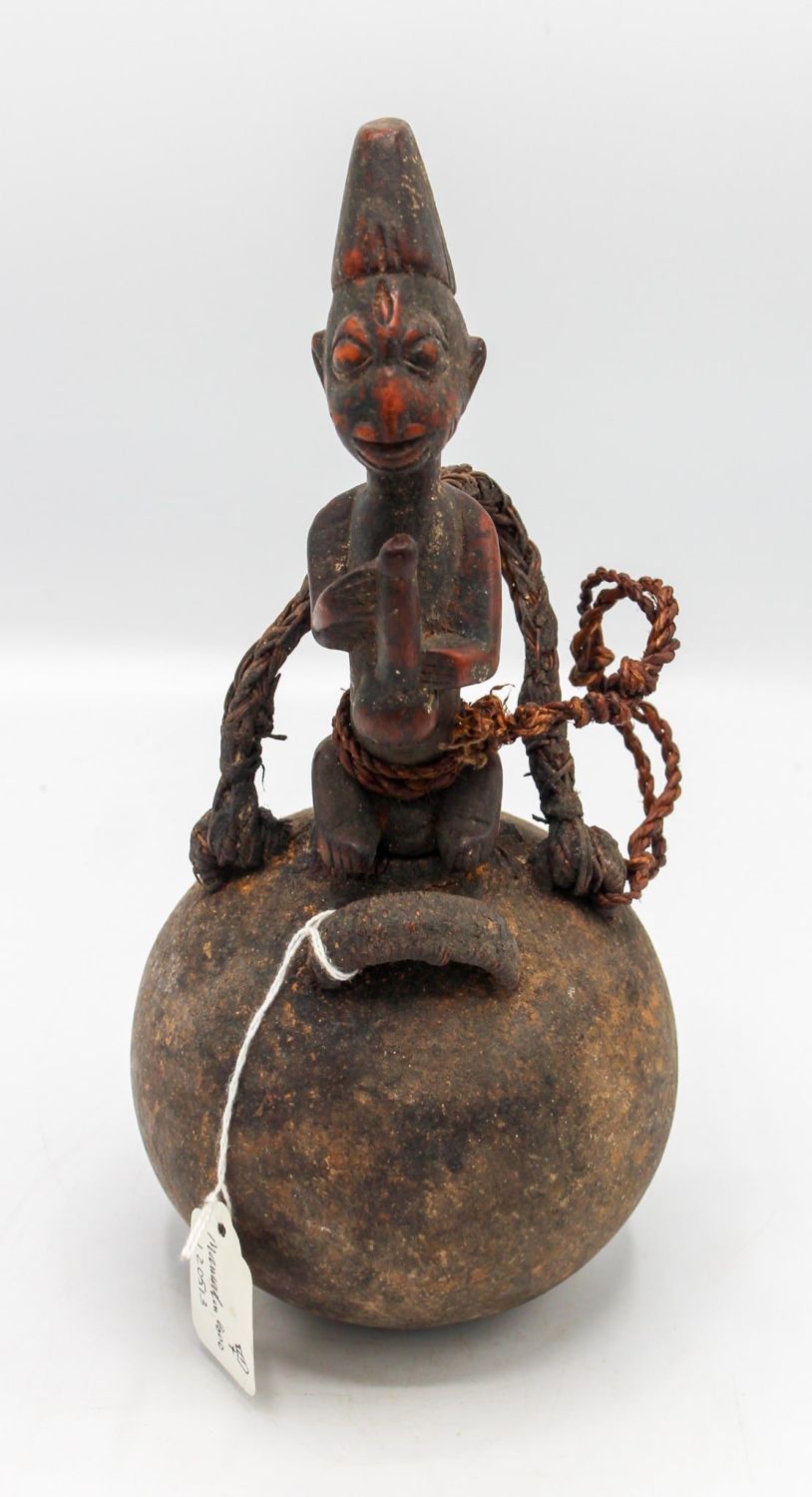 Yoruba people style, carved wood, natural fiber, Nigeria, West Africa, 20th century. Approximate size, 11"H.