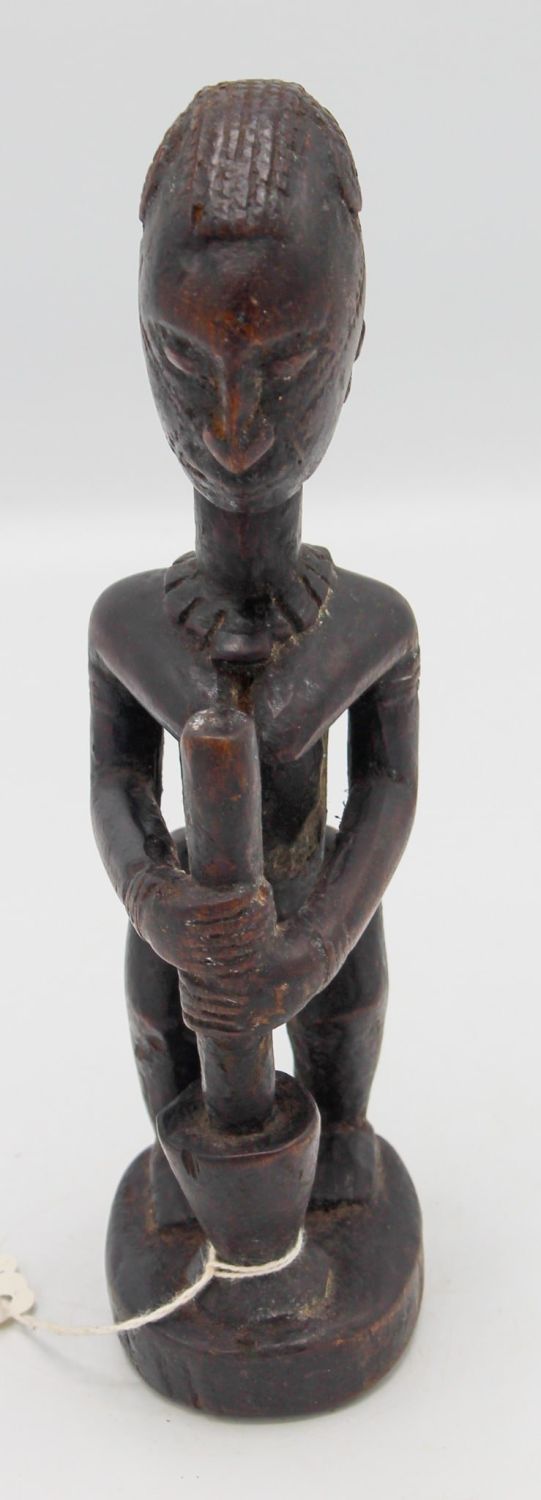 Dogon people style, carved wood figure using pestle and mortar, Mali, West Africa, 20th century. Approximate size, 9.1"H.