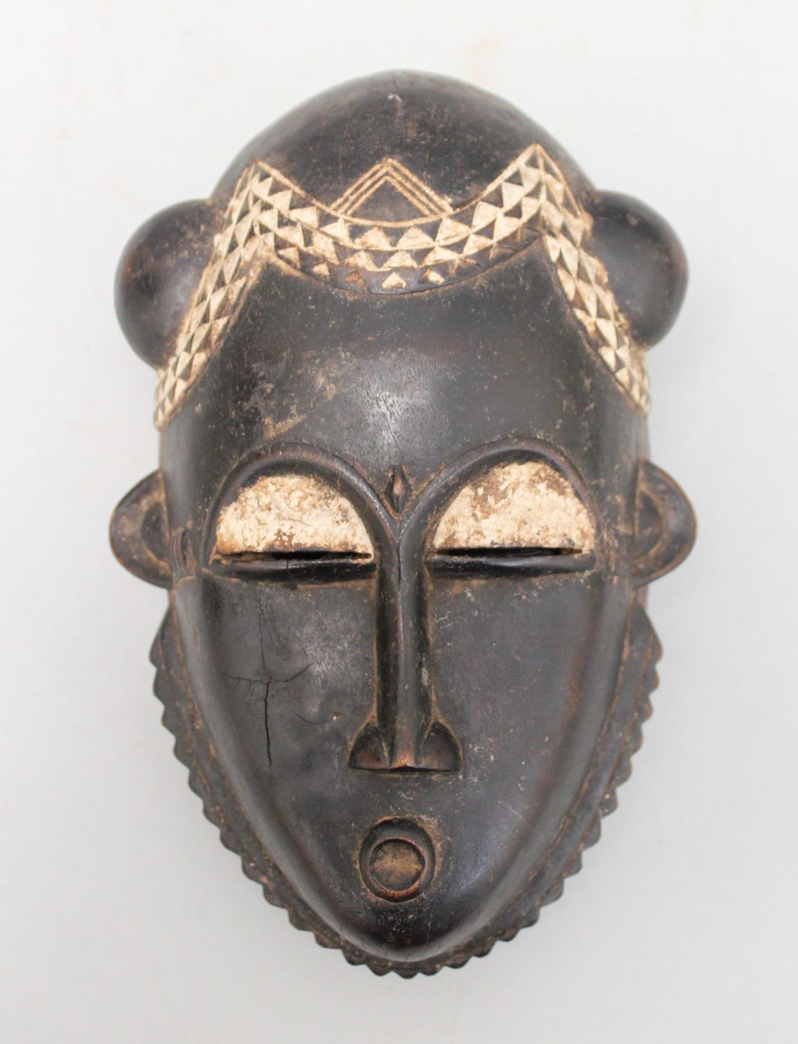 Baule peoples style carved wood mask, Ivory Coast, West Africa, 20th century. Approximate size, 8.6"H.