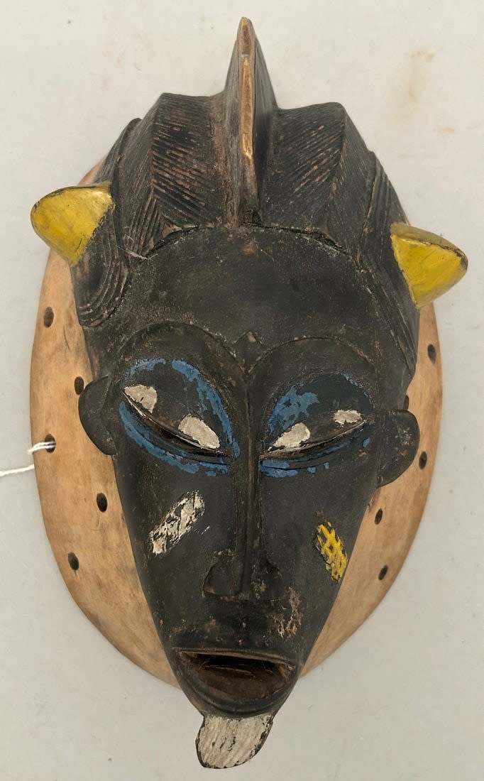Baule peoples style carved wood mask with pigments, Ivory Coast, West Africa, 20th century. Approximate size, 8.6"H.