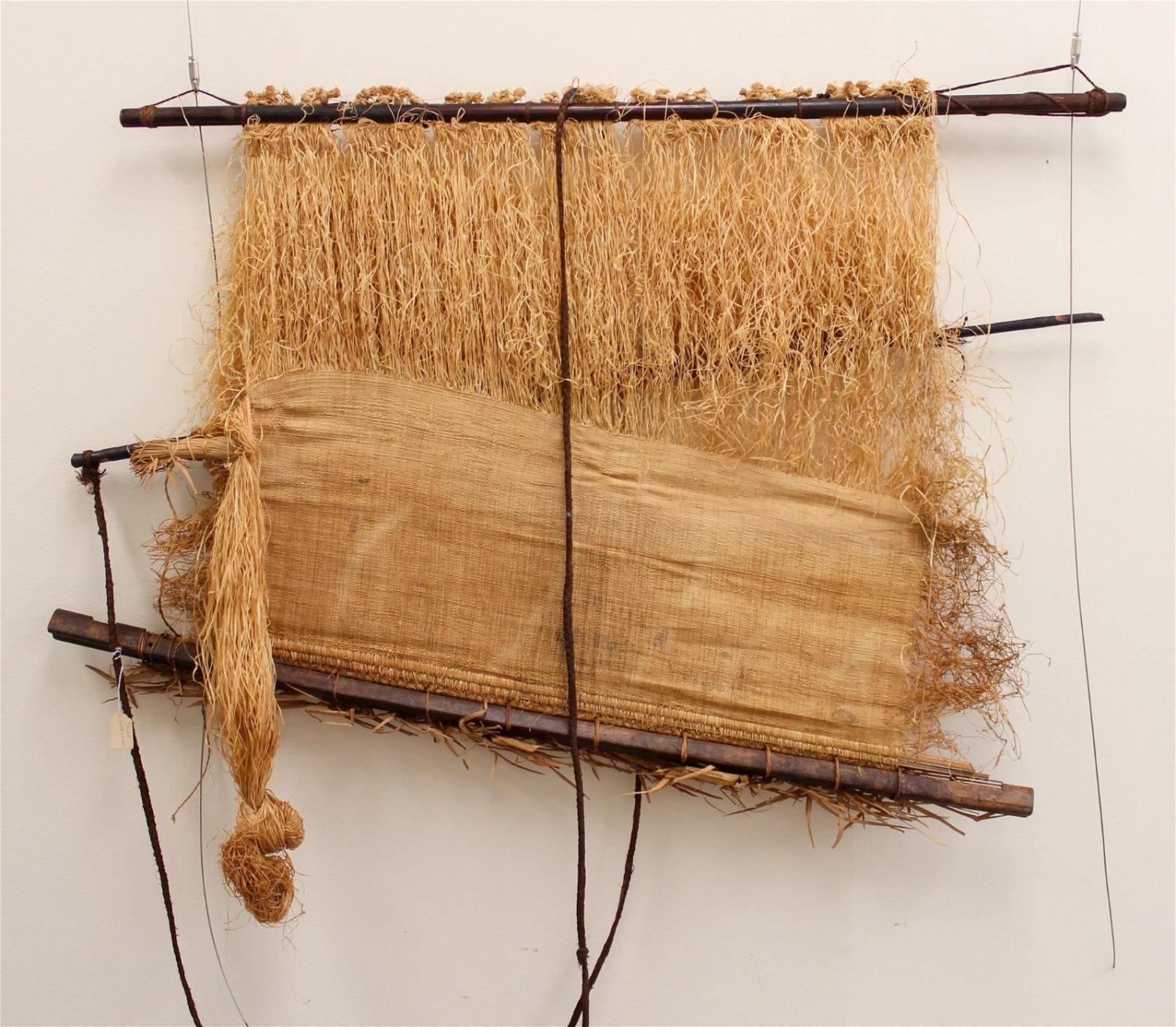 Kuba peoples, loom with partly completed raffia weaving, Democratic Republic of the Congo, Central Africa, 20th century.Approximate size, 32"h x 44"W.