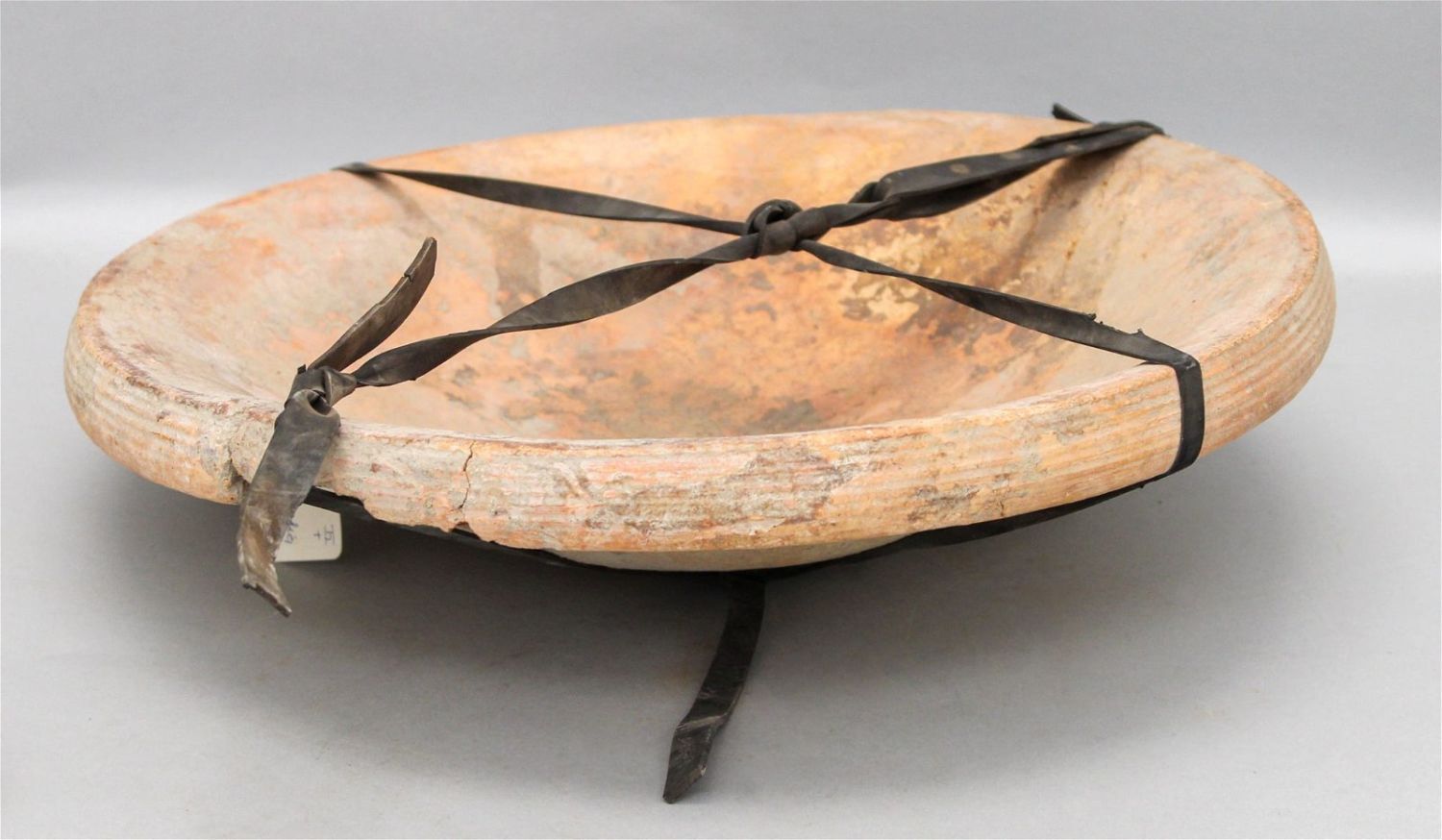 Large terracotta artifact, Mali, West Africa, convex side with fine decorative patterning. Approximate size 3.5"H x 15" Diameter.
