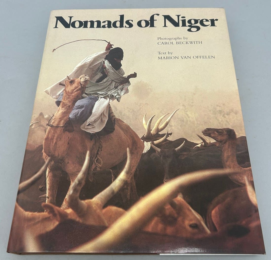 Nomads of Niger with photographs by Carol Beckwith and text by Marion Van Offelen, hardback, signed by both Carol Beckwith and Marion Van Offelen. Approximate dimensions 13.25"H x 10.5"W, 224 pages.