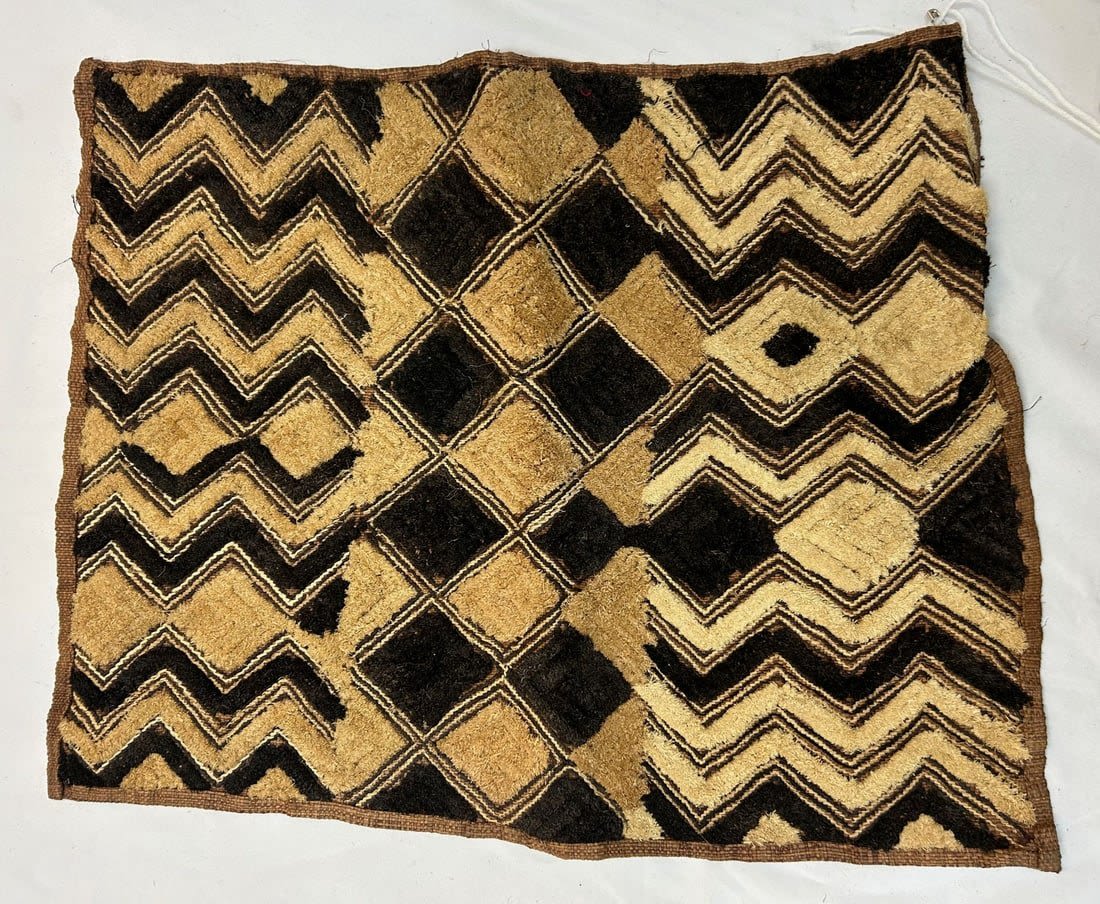 Kuba peoples, Democratic Republic of the Congo, Central Africa, cut-pile embroidered raffia textile, likely first half of the 20th century, 24" x 19"