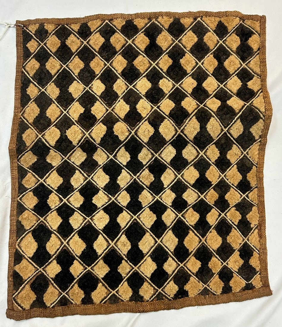 Kuba peoples, Democratic Republic of the Congo, Central Africa, cut-pile embroidered raffia textile, likely first half of the 20th century, 23" x 20"