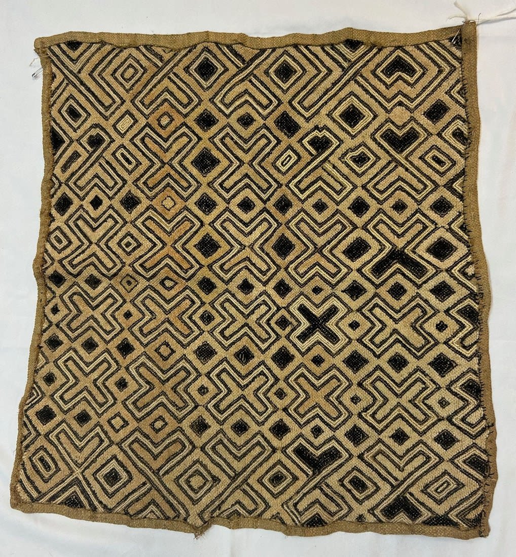 Kuba peoples, Democratic Republic of the Congo, Central Africa, cut-pile embroidered raffia textile, likely first half of the 20th century, 23" x 21"