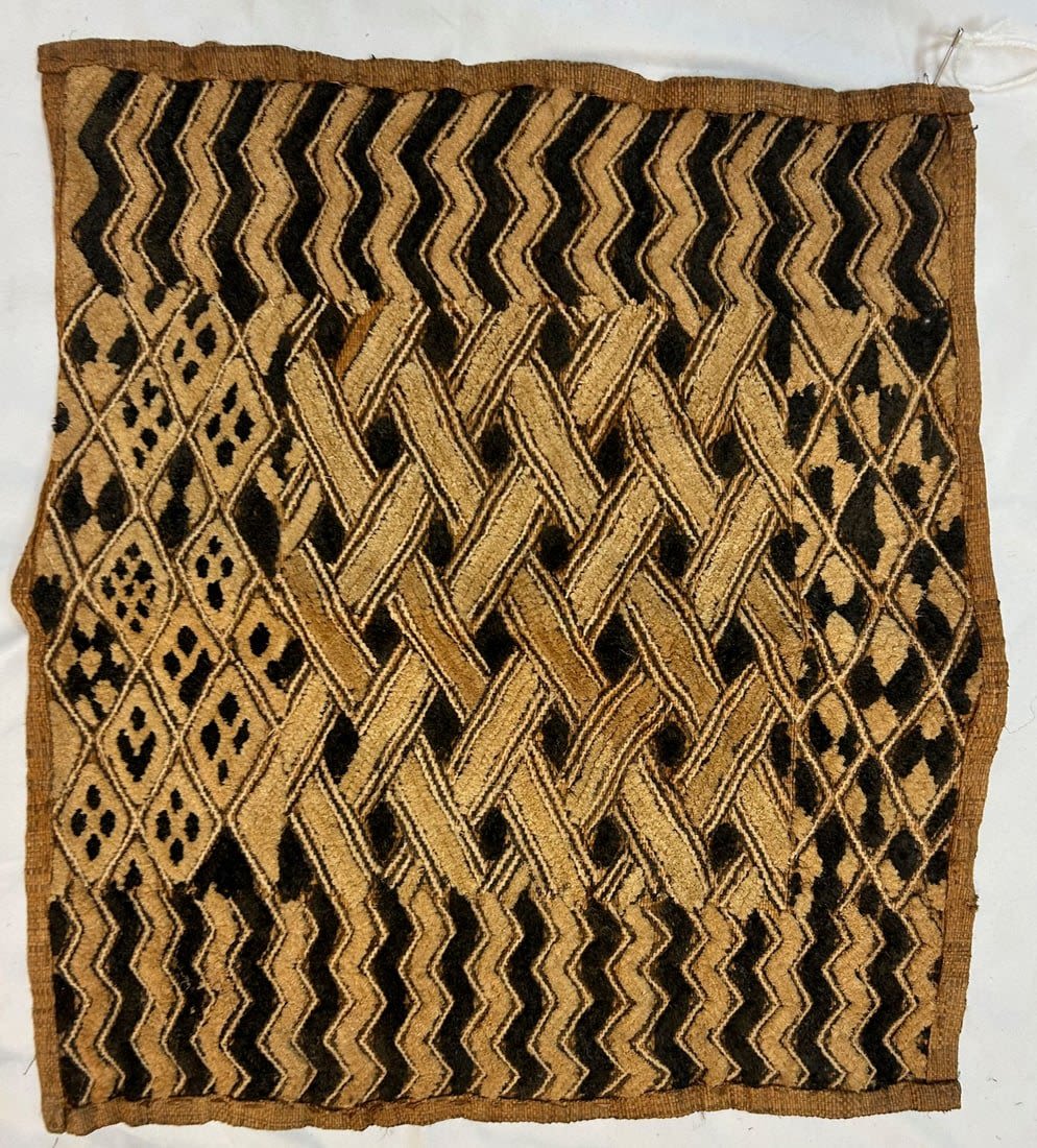 Kuba peoples, Democratic Republic of the Congo, Central Africa, cut-pile embroidered raffia textile, likely first half of the 20th century, 20" x 22"