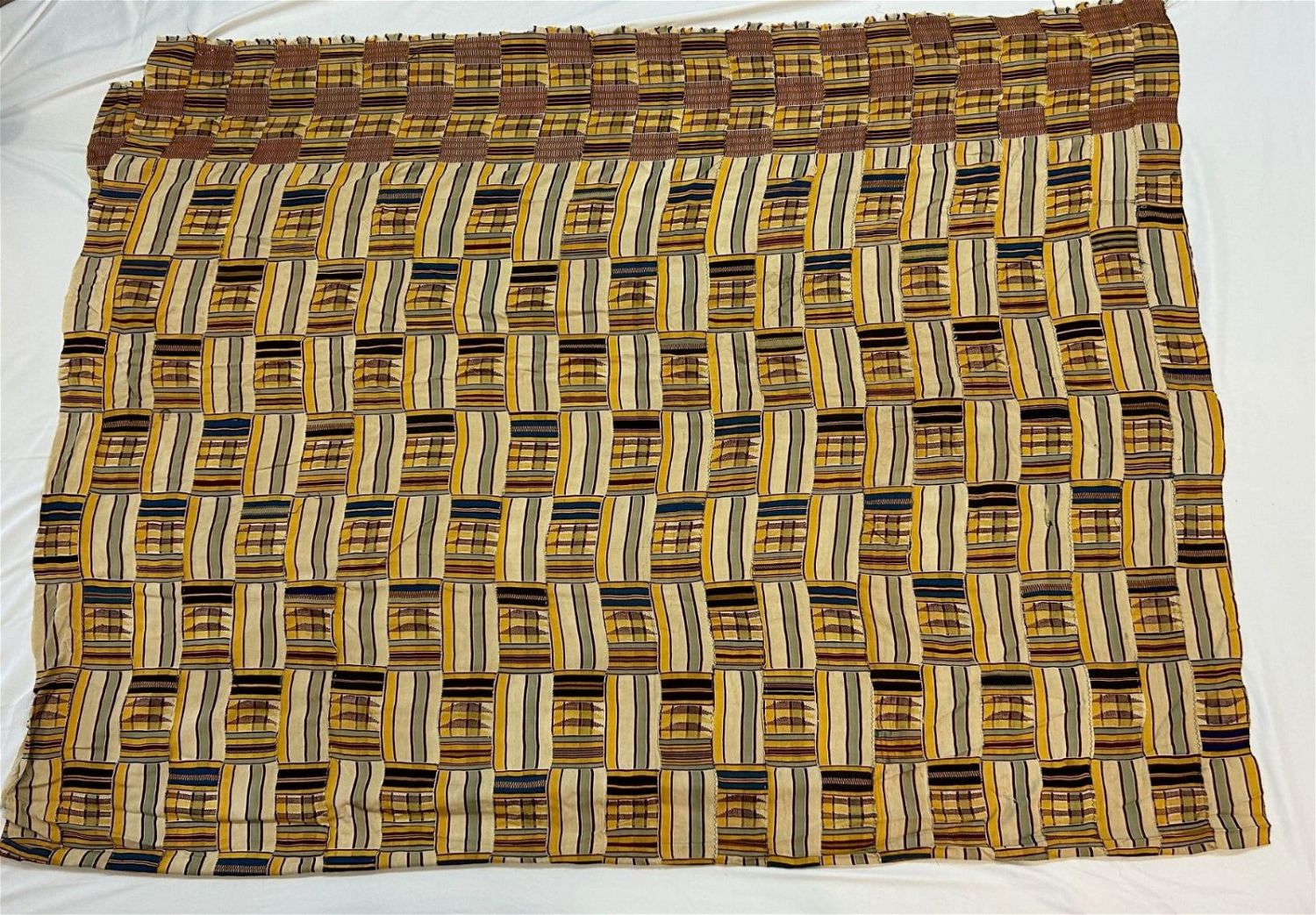 Kente woven textile, Asante or Ewe peoples, Ghana or Togo, West Africa. Likely mid-20th century.Approximate size, 73" x 110"