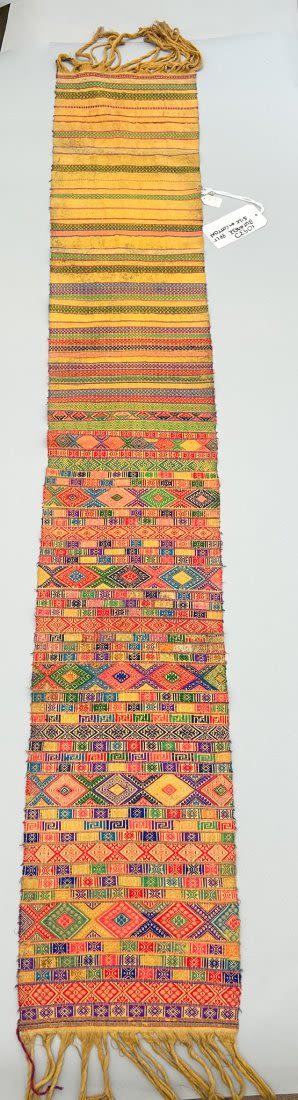 Bhutan, embroidered silk on cotton belt, 76"l X 12"w