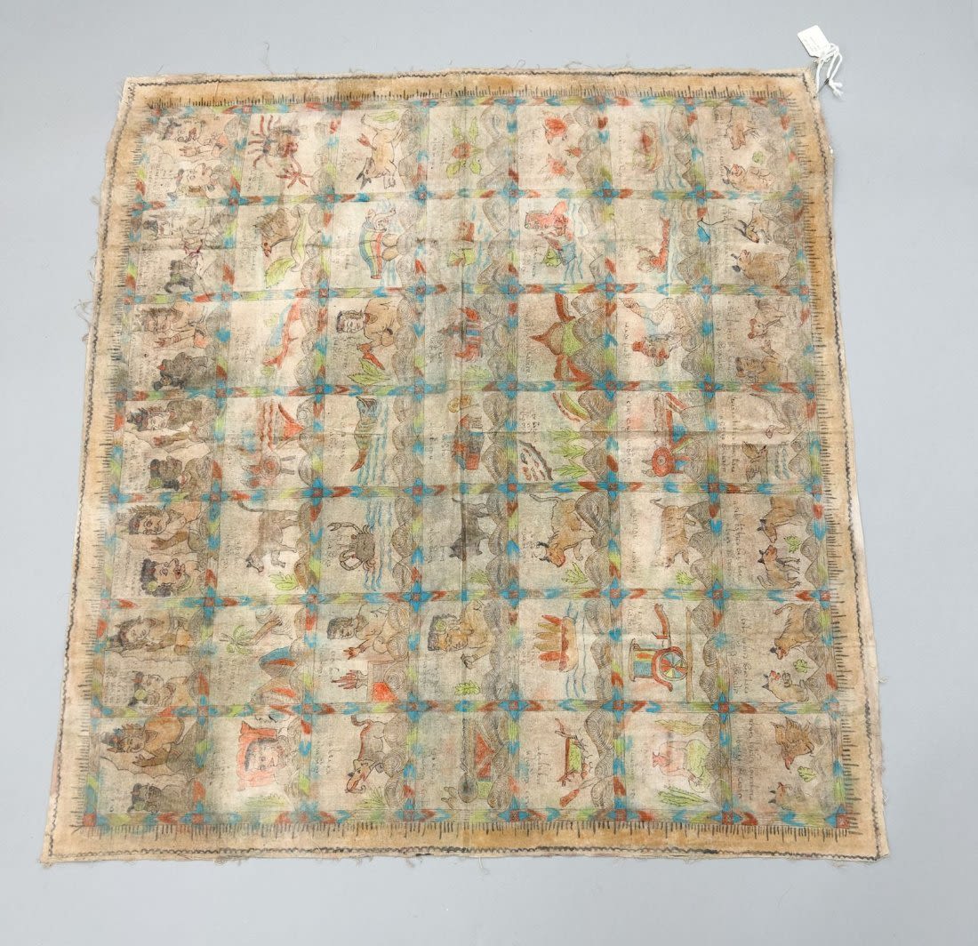 Indonesia, Bali, imprinted cotton calender, 34"l X 34"w