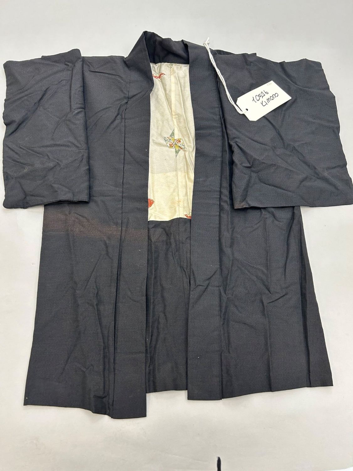 Japan, silk kimono, 30"l X 46"w 47"shoulder 15 "sleeve length
