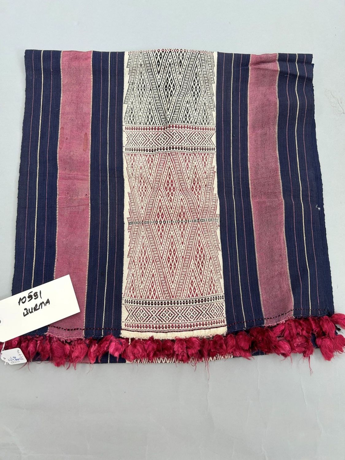 Burma, Kachin, cotton/silk shoulder cloth, 82"l x 20"w
