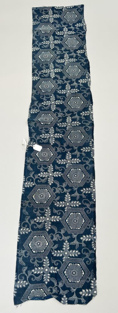 Japan, stencil indigo cotton textile, 60"l x 12"w