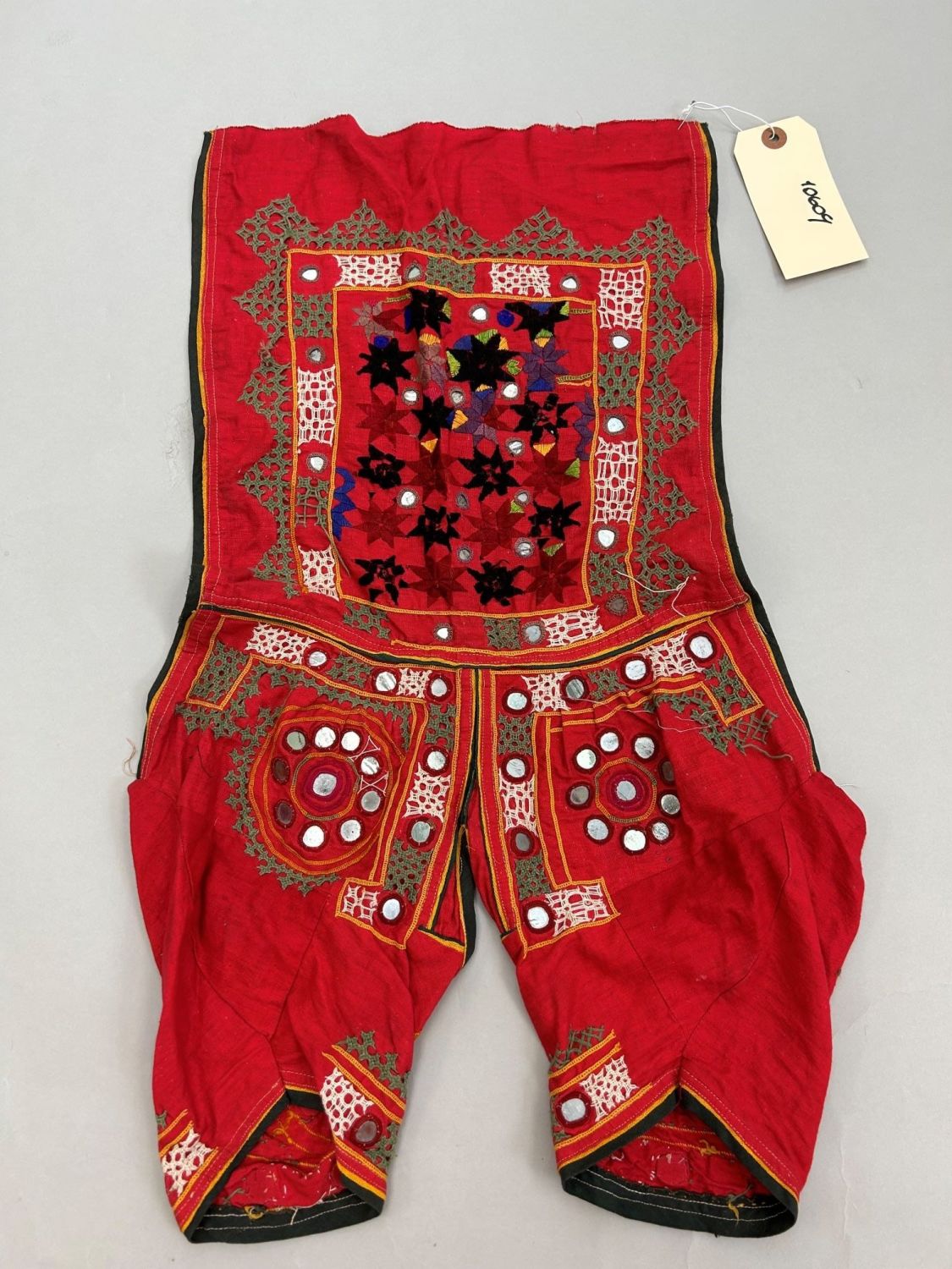 India, Gujarat, cotton accessory with mirror embroidery pattern, 26"l x 13"w