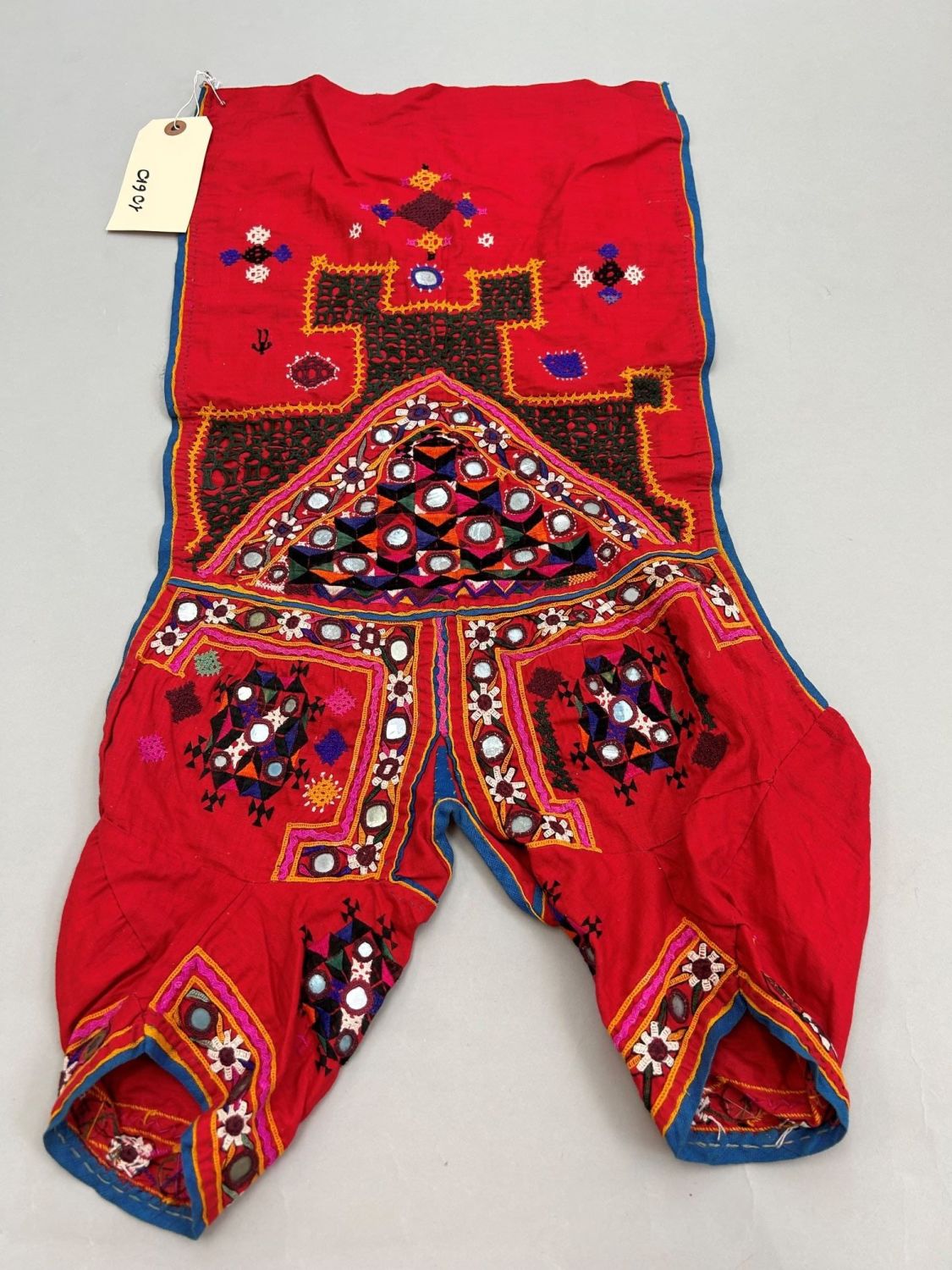 India, Gujarat, cotton accessory with mirror embroidery pattern, 27.5"l x 12.5"w