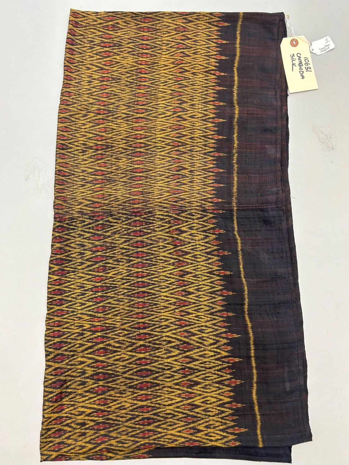 Cambodia, silk sarong, 32"l x 30"w Condition: Good, some small stains