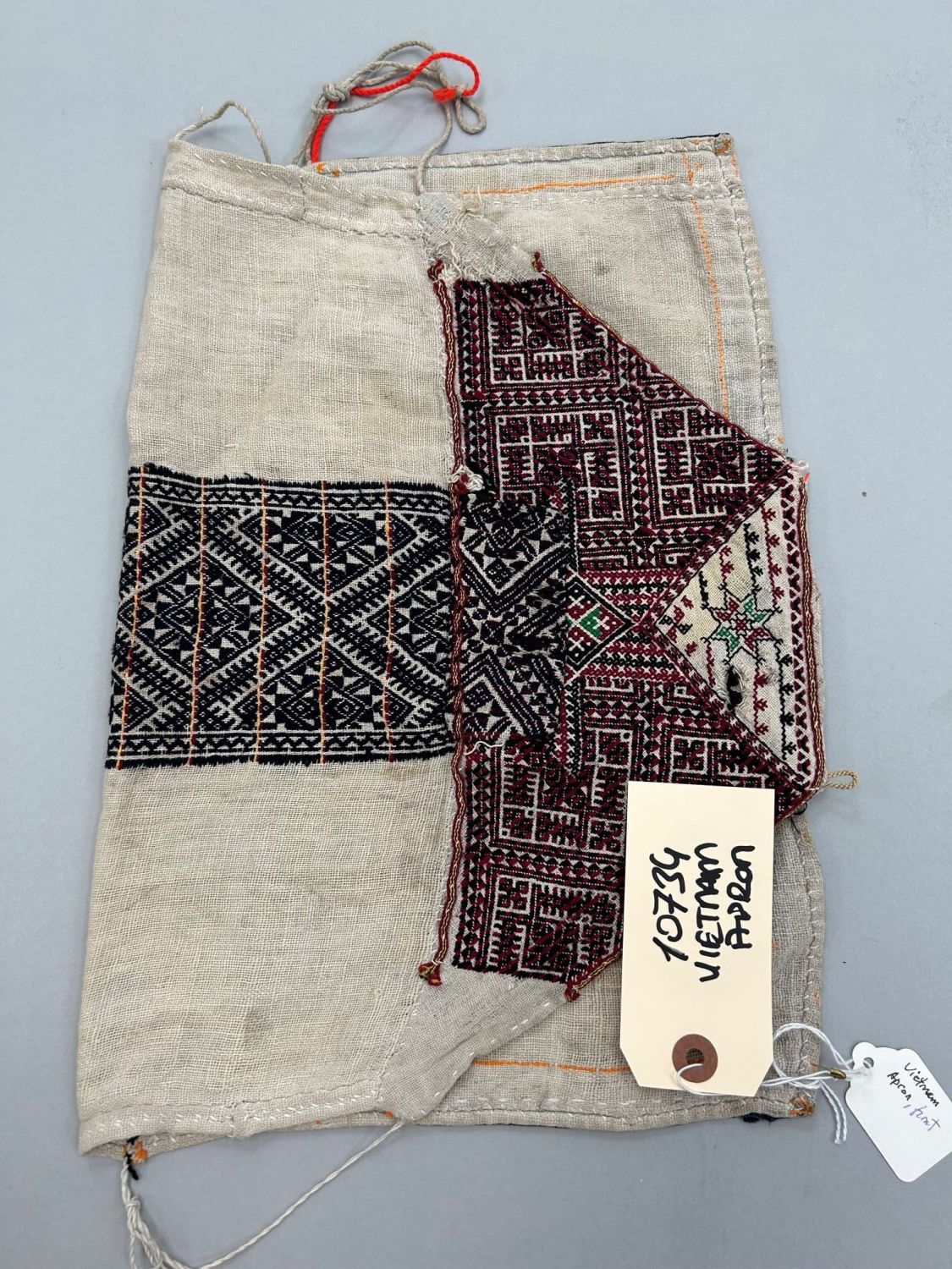 Vietnam, embroidered cotton apron, 22"l x 16"w