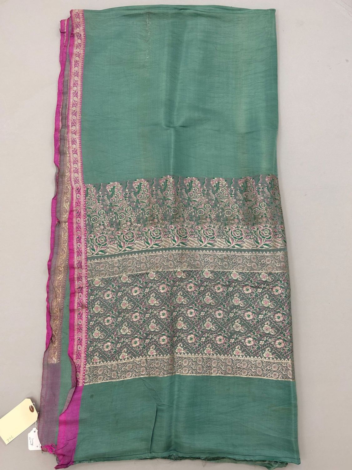 India, Silk Sari with metal gold tone pattern, 192"l x 44"w