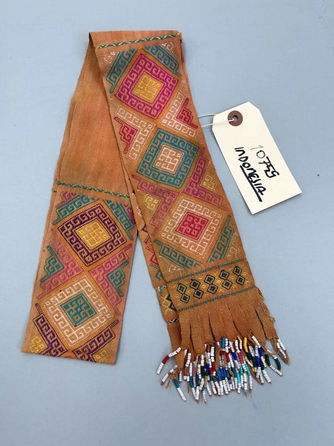 Indonesia, Timor, Embroidered Cotton Belt with Beads at each end