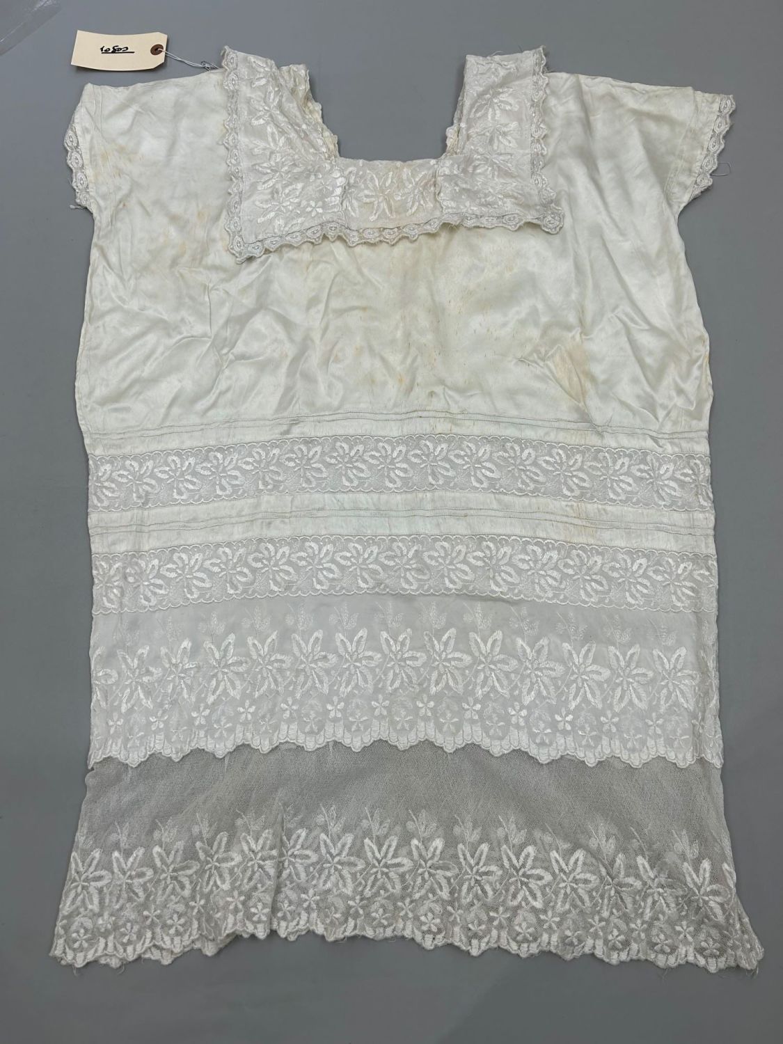 Mexican, silk huipil with lace edges, 37"l x 28"w, shoulder 25",