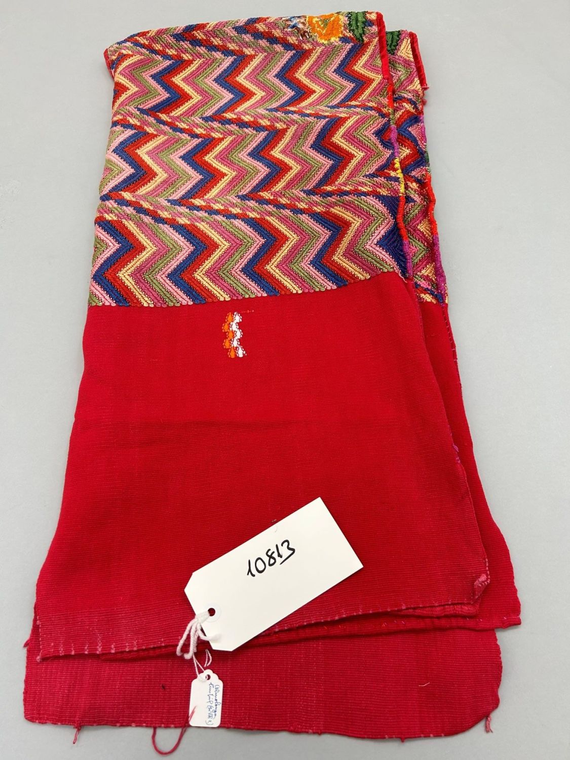 Guatemala, Almolongo, embroidered cotton huipil, 28"l x 27"w, shoulder 27"