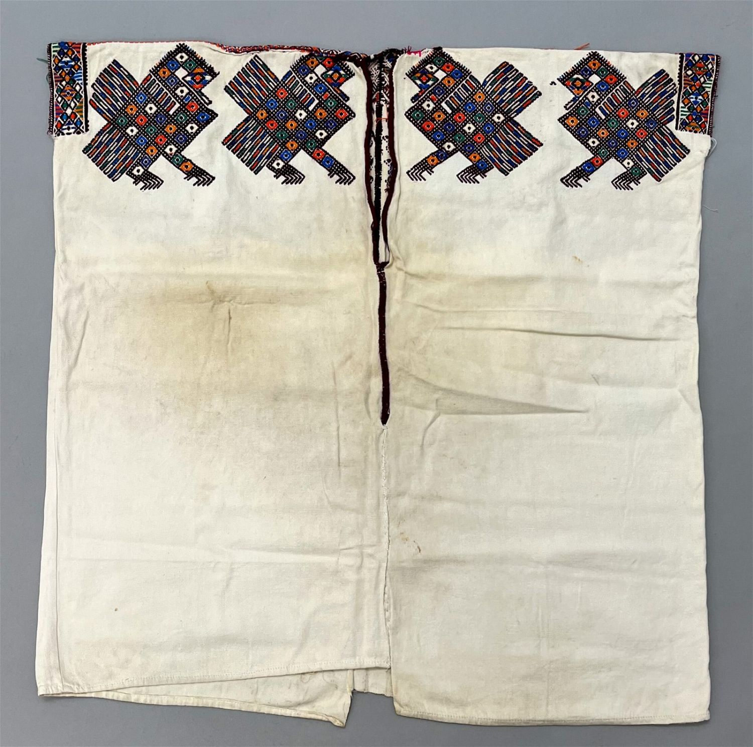 Nahuala, Solola, Guatemala, vintage woven undyed cotton "Huipil" tunic embroidered with ducks, 28"l x 27"w