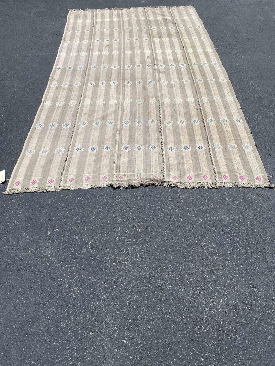 Vintage Area Rug, 65"w x 117"l Condition: Poor condition, excessive staining Dimensions: 65 in