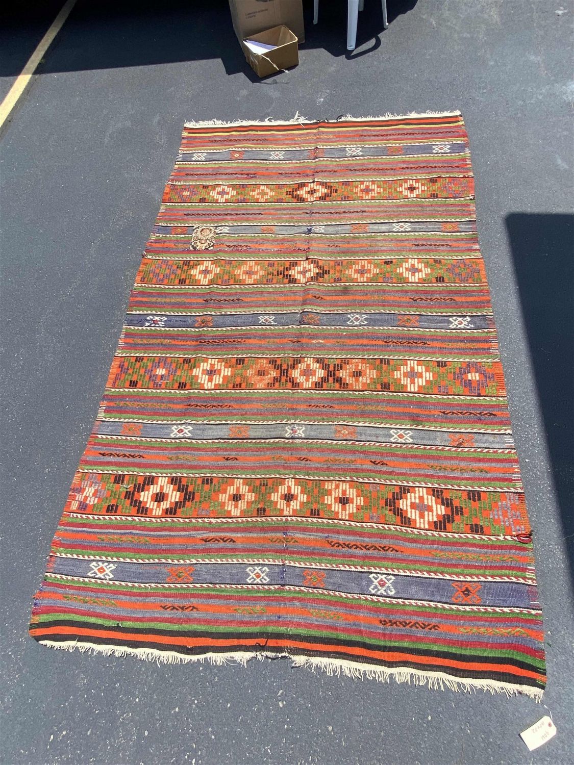 Vintage Handmade Rug, 72"w x 120"l Condition: Poor condition Dimensions: 72 in