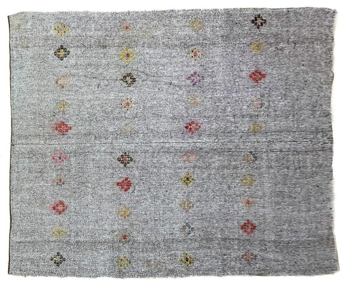 Vintage Handmade Kilim , 79"w x 110"l Condition: Fair with some color bleeding and stain. Dimensions: 79 in