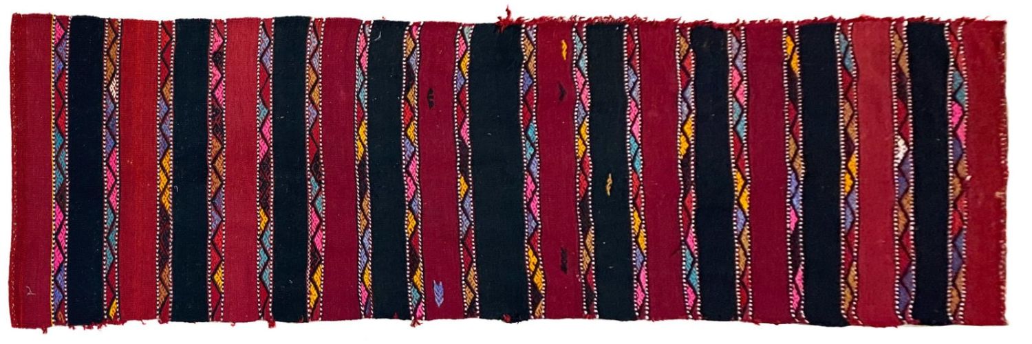 Vintage Handmade Turkish Kilim Runner, 31"w x 111"l Condition: Fair with some wear. Dimensions: 31 in