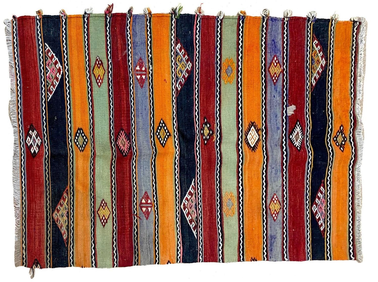 Vintage Handmade Turkish Kilim, 30"w x 57"l Condition: Fair with sign of wear and fade. Dimensions: 30 in