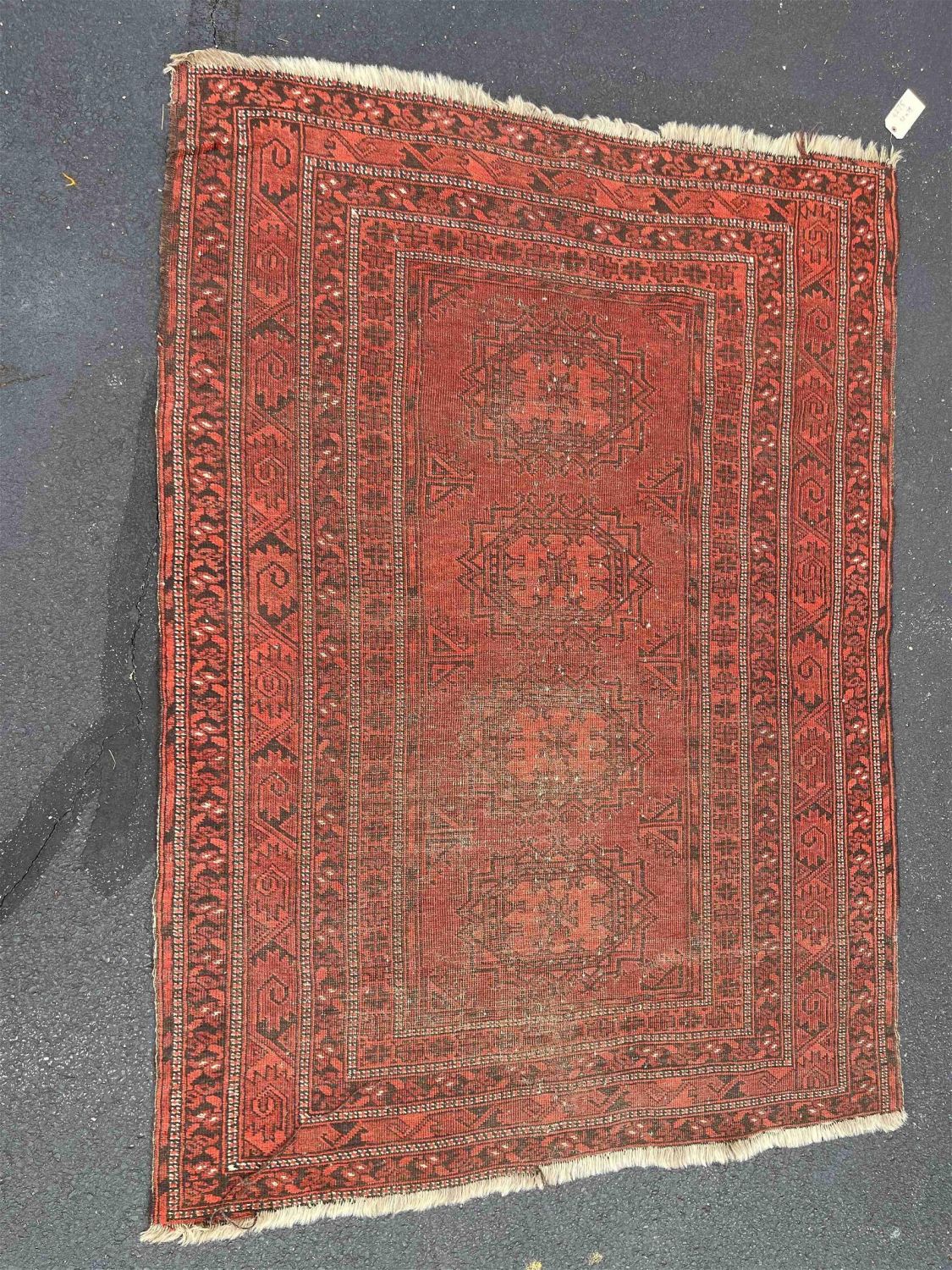 Vintage Handmade Oriental Rug, 58"w x 79"l Condition: Good with aging wear. Dimensions: 58 in
