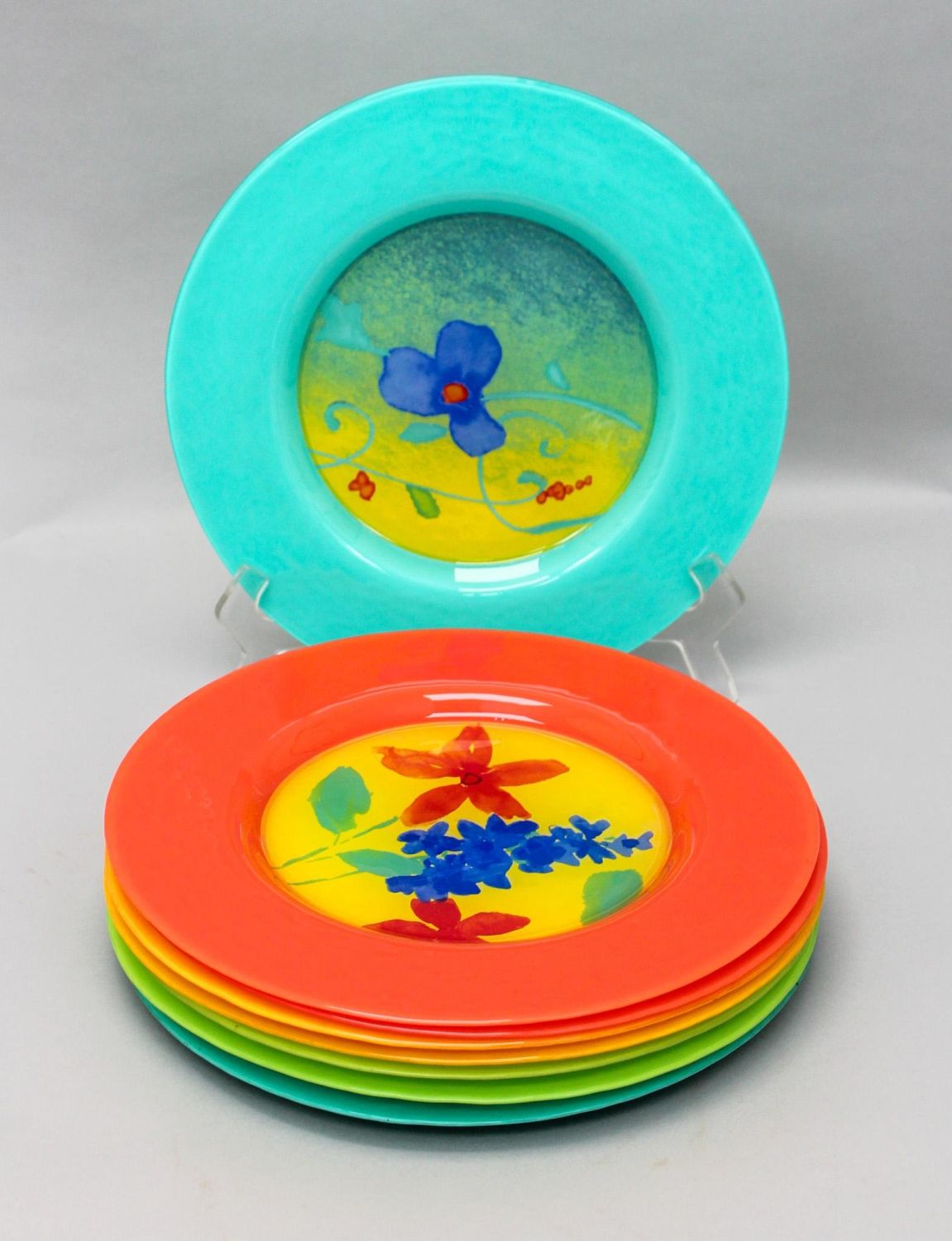 Set of (8) Dibbern handmade in Germany, "Kristina" assorted color charger plates, 0.5"h x 13"d each