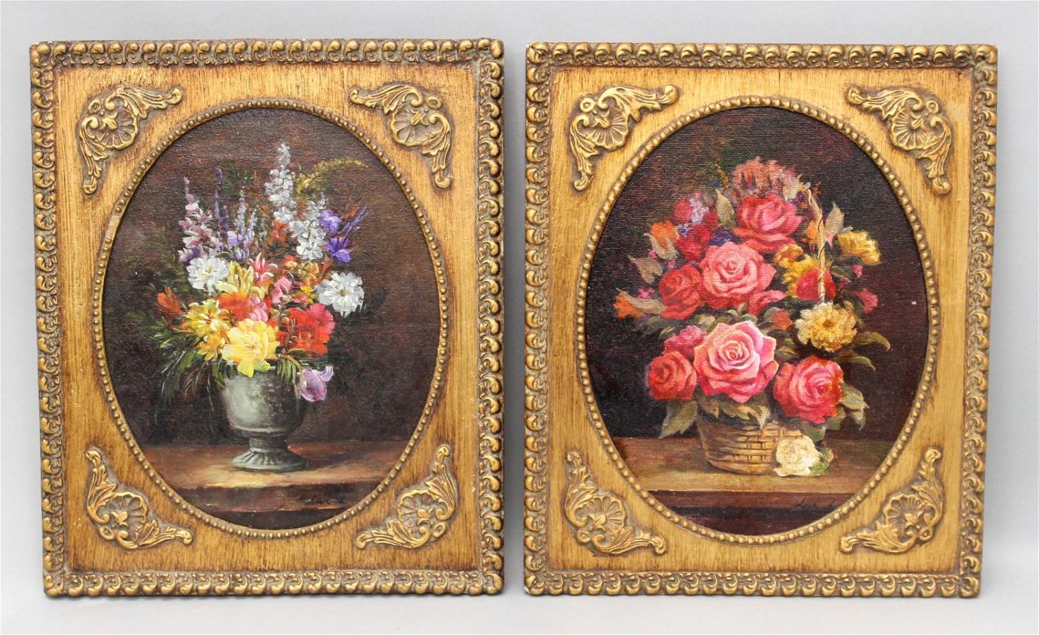 Pair of Floral Still Life Oil on Canvas