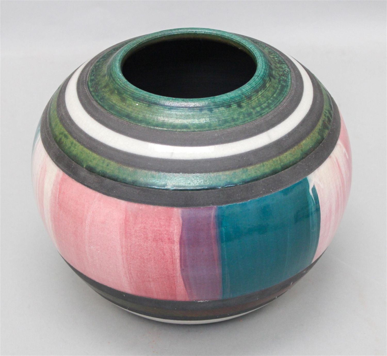 Vintage glazed ceramic Raku gourd shaped pottery, signed Mark Nowak 1991, 7.75"h x 7"d Condition: Good, some glaze defects Dimensions: 7.75 x 8 in