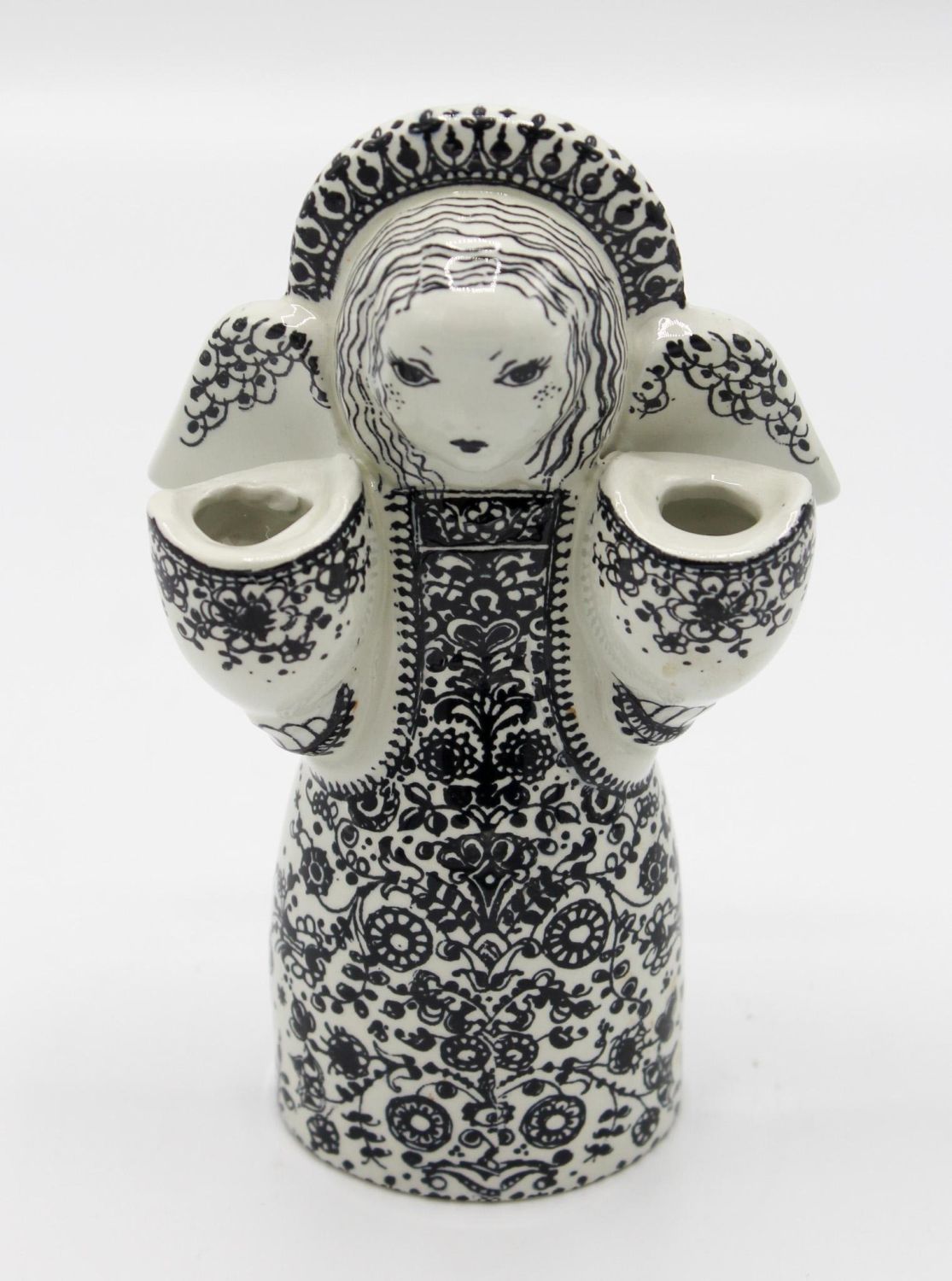 Vintage Danish Nymolle black and white porcelain angel candle holder figurine, marked on bottom Decor: 3315. 474 EB, 5.5"h x 3.25"w