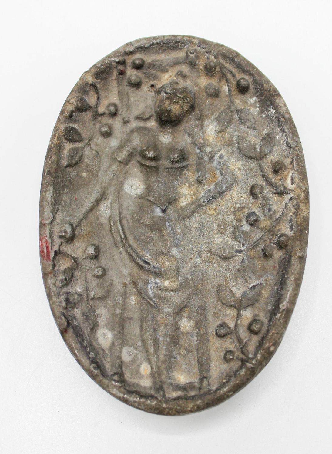 Vintage cast iron risque ashtray, unmarked, 1"h x 5"w x 3.5"d Condition: Fair, some tarnish, minor rust spots Dimensions: 1 x 5 x 3.5 in