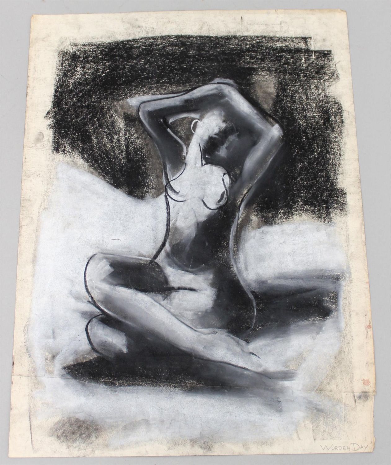 Worden Day (American, 1912-1986) nude female figure pastel on paper, signed lower right Worden Day, unframed, 24"h x 18"w