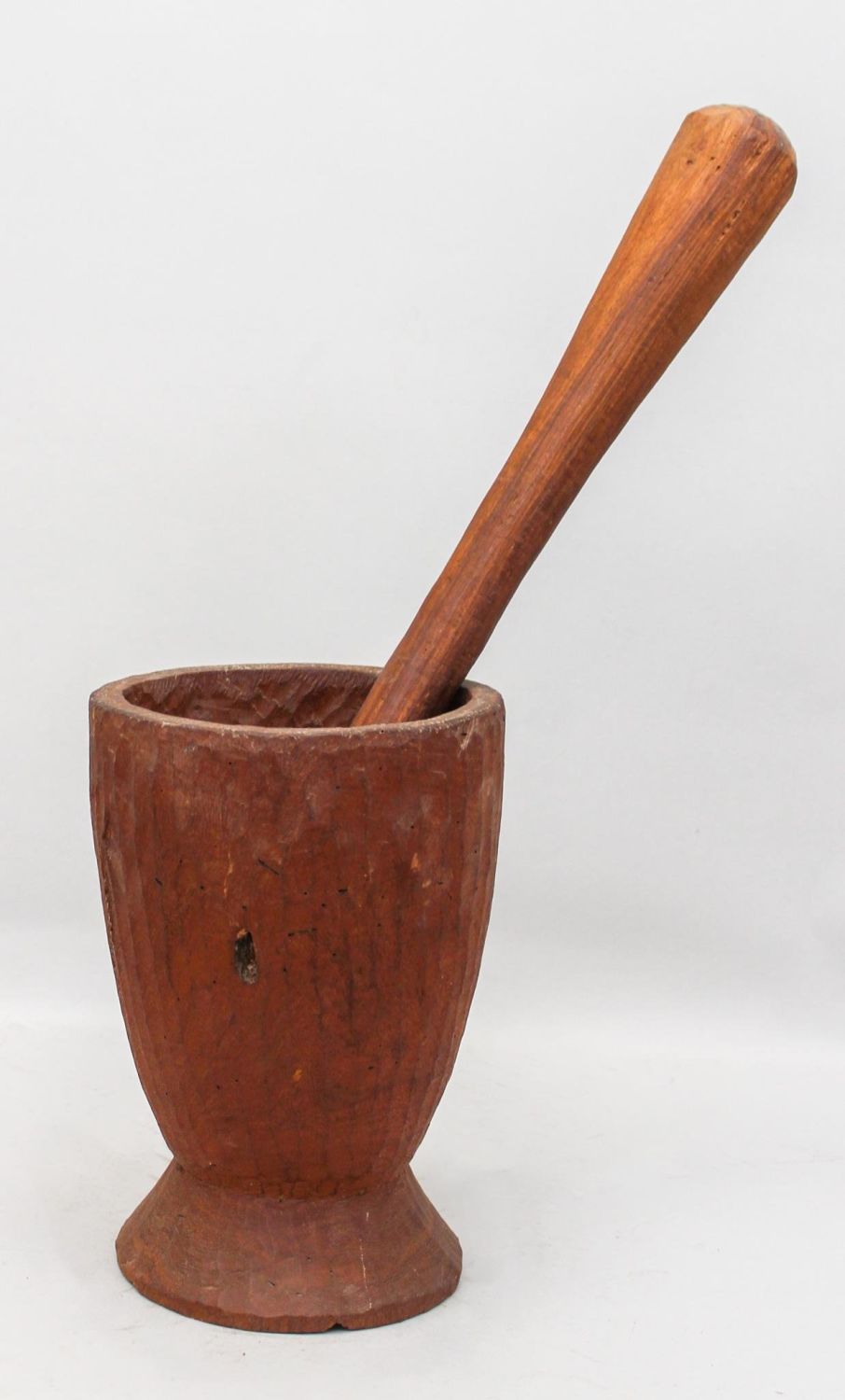 Possibly African rustic wooden mortar and pestle, mortar 10"h x 7"d, pestle 19"l