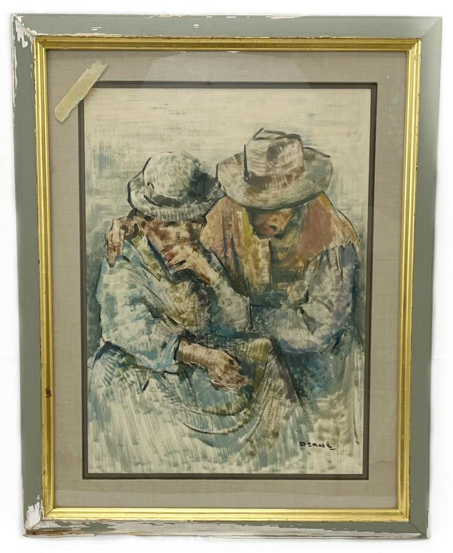 Portrait peasant couple watercolor on paper, signed lower right possibly Berne, under glass, 26"h x 18.5"w (sight) 35"h x 28"w (frame)