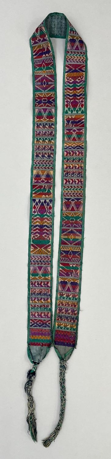 Totonicapan, Guatemala, vintage woven cotton "Cinta" hair ribbon with symbolic earth tone pattern, 80"l x 3"w