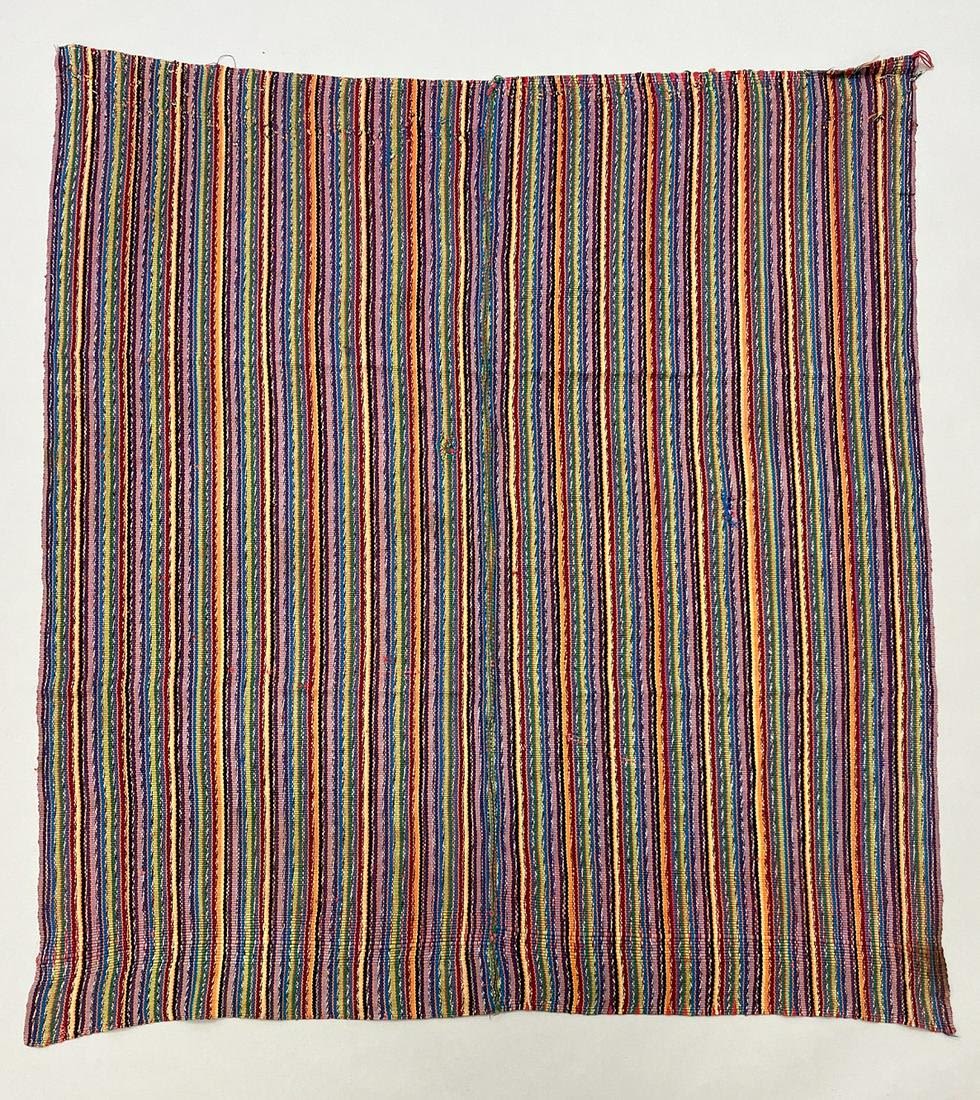 San Antonio Aguas Calientes, Sacatepequez, Guatemala, vintage woven cotton "Tzute" wrap with multicolor stripes, consists of two panels sewn together, 40"l x 36"w