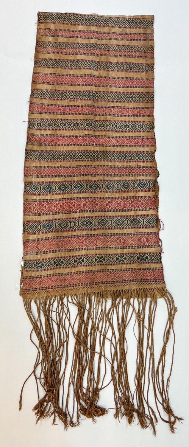 Bhutan, vintage woven silk and cotton sash, multi color embroidery stripe pattern, 71"l x 15"w