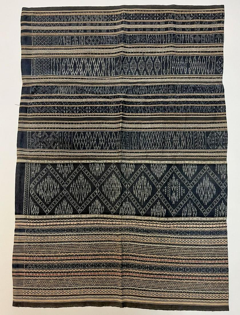 Li People, Hainan Island, South China, vintage woven cotton sarong, indigo ground with traditional pattern, 36"l x 24"w