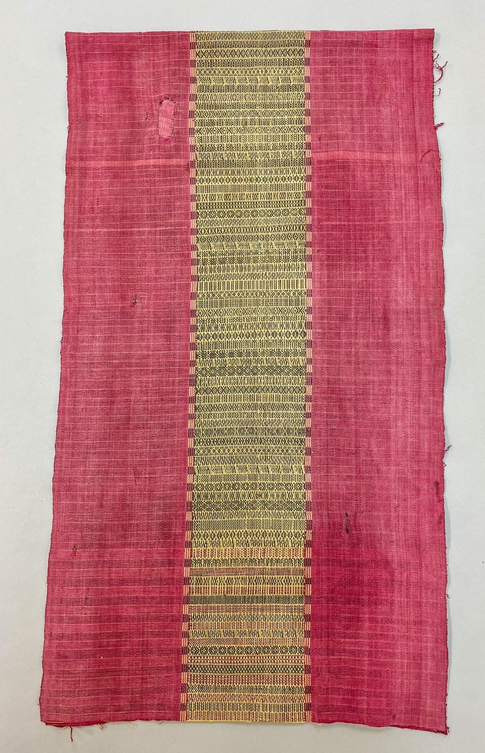 Ubon Ratchathani, Thailand, vintage woven cotton textile, magenta and yellow stripes with traditional pattern, 64"l x 17"w