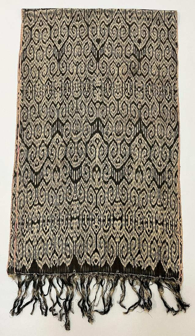 Timor, Indonesia, vintage woven cotton ikat shoulder cloth, black ground with traditional tribal pattern, 74"l x 22"w