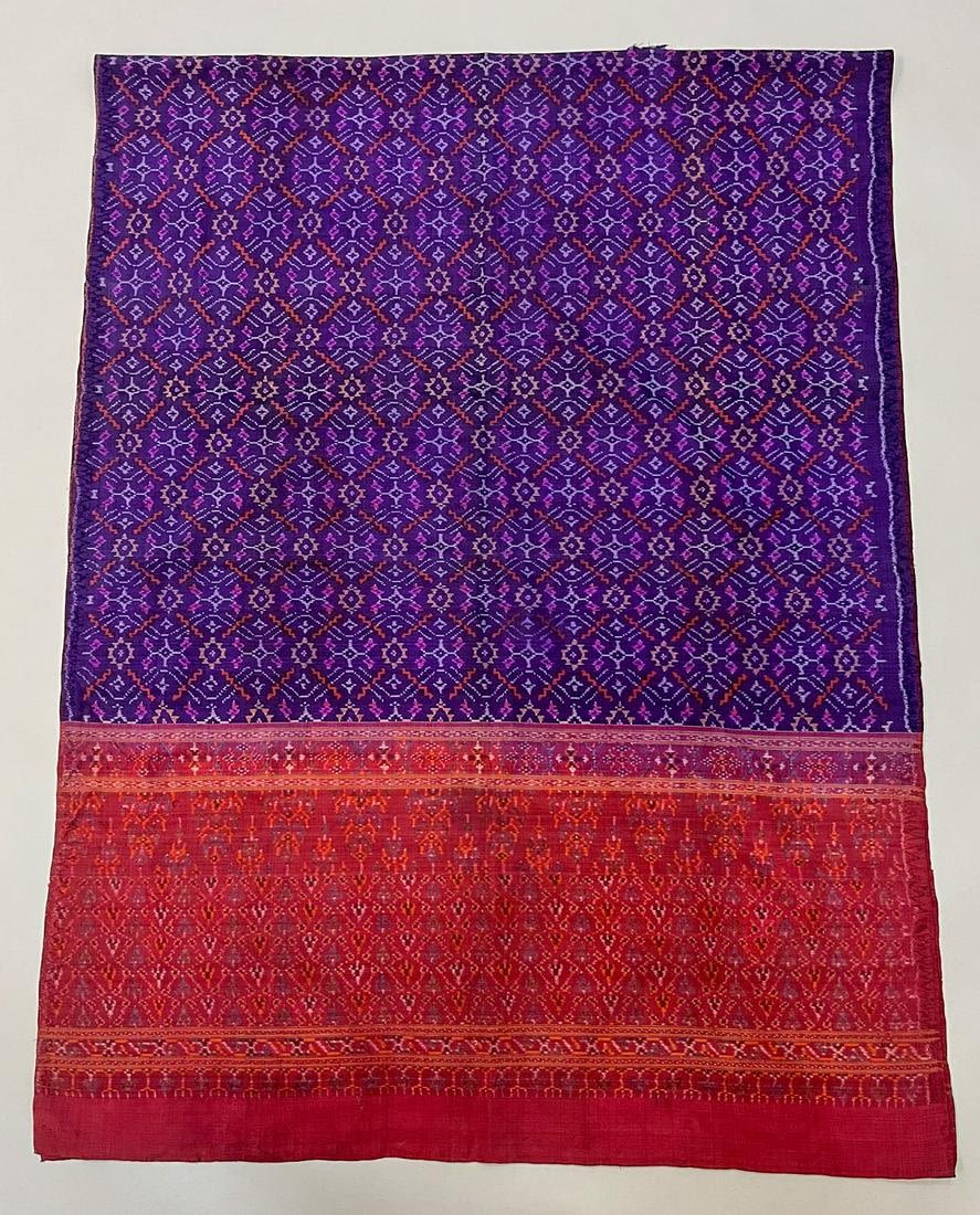 Kota Bharu, East Coast, Malaysia, vintage silk shoulder cloth, burgundy, purple color with traditional pattern, 85"l x 32"w